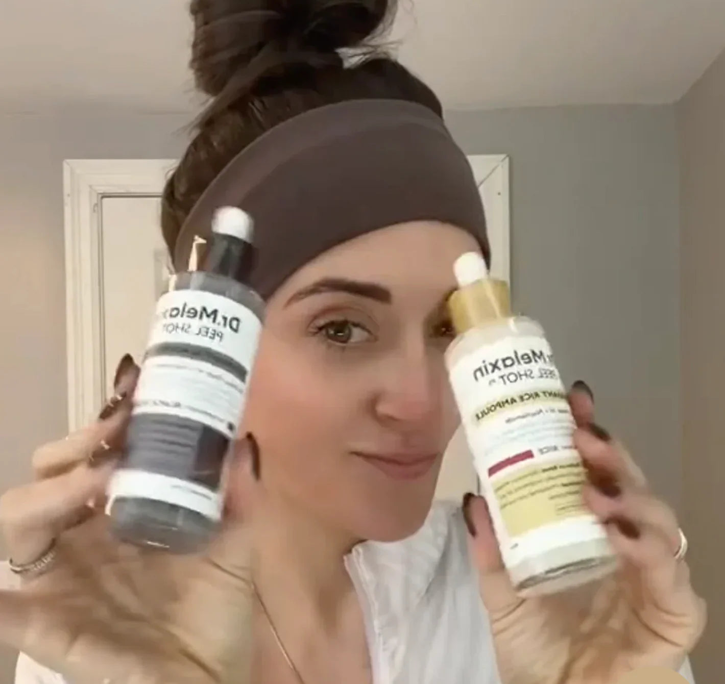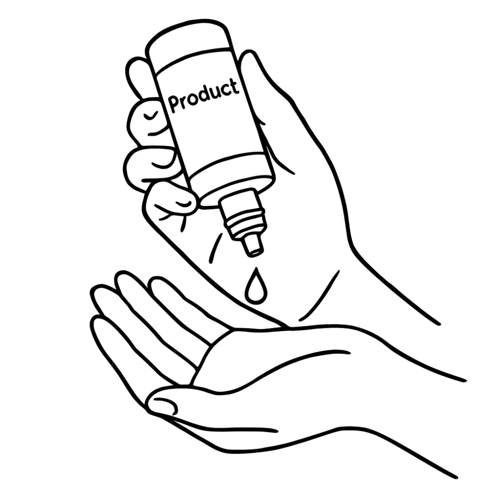 Start with freshly cleansed, dry skin. Pump 1–2 drops of the product into your palm. The lightweight texture spreads easily, so you don’t need much.