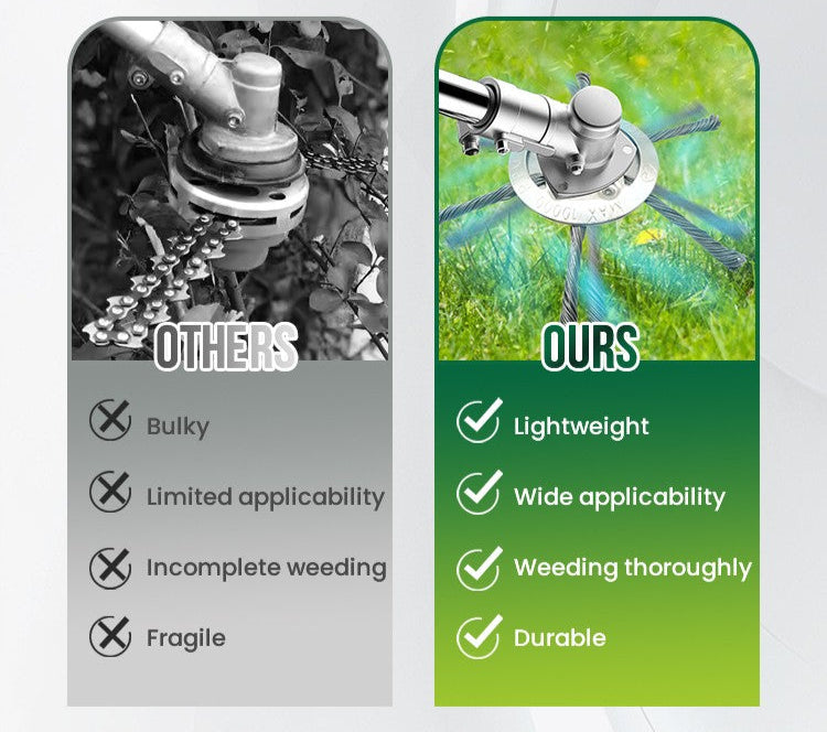 The steel wire design cuts through the toughest weeds, ensuring a faster and more efficient gardening experience.